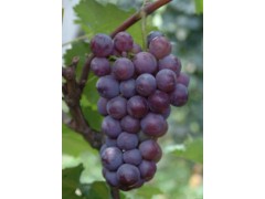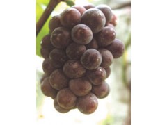 1基本特征 嫩梢绿。幼叶浅绿色,叶背密生绒毛。成叶大,多为4裂,叶缘锯齿钝。成熟新梢红褐色。冬芽大而饱满。果穗园锥或园柱形,激素处理后,穗均600~900克,最大1600克,果粒圆形,着生紧密,排列整齐,膨大后均8~10克。结合疏果和两次膨大期施足肥水,粒均重10~11克。果皮厚,黑色至蓝黑色。果肉硬脆,果汁淡红色。味甘甜,草莓香,个别穗有1~2粒有核果,内多生1粒种子,干物质含量20%~22%。